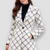 Gracias a su patrón atemporal de rombos negros sobre fondo claro, este abrigo se convierte en una pieza protagonista que puede combinarse fácilmente con pantalones oscuros, jeans, faldas lápiz o incluso prendas monocromáticas para un look más minimalista.