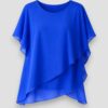 La Blusa Capa Azul es una prenda elegante y moderna que destaca por su diseño fluido y su estilo sofisticado.