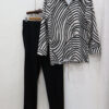 Blusa Estilo Zebra es una pieza moderna y sofisticada que resalta por su estampado audaz e hipnótico.