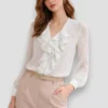 Este detalle aporta movimiento y protagonismo a la prenda, elevando cualquier conjunto con un aire romántico y sofisticado.