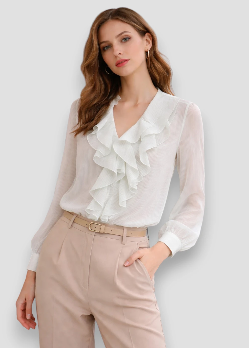 Ideal para quienes buscan una prenda con carácter pero sin excesos, esta blusa se convierte en una pieza clave en el armario.