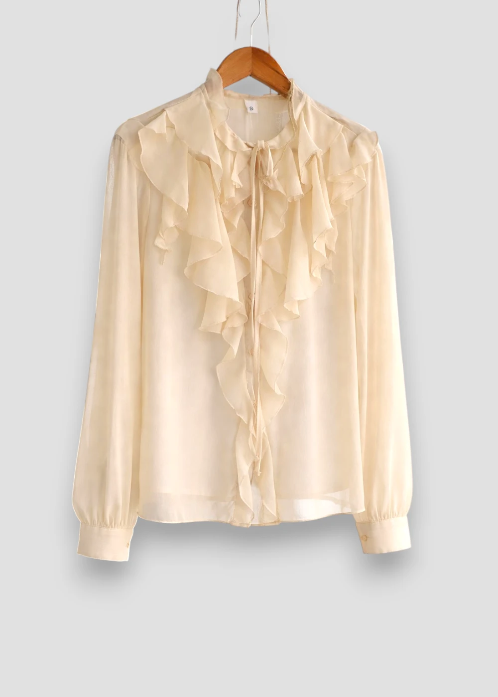 Blusa elegante y femenina confeccionada en tejido ligero y semitransparente, con un diseño fluido y versátil.