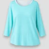 Su color turquesa aporta frescura y luminosidad al conjunto, convirtiéndola en una opción ideal para looks casuales y desenfadados.