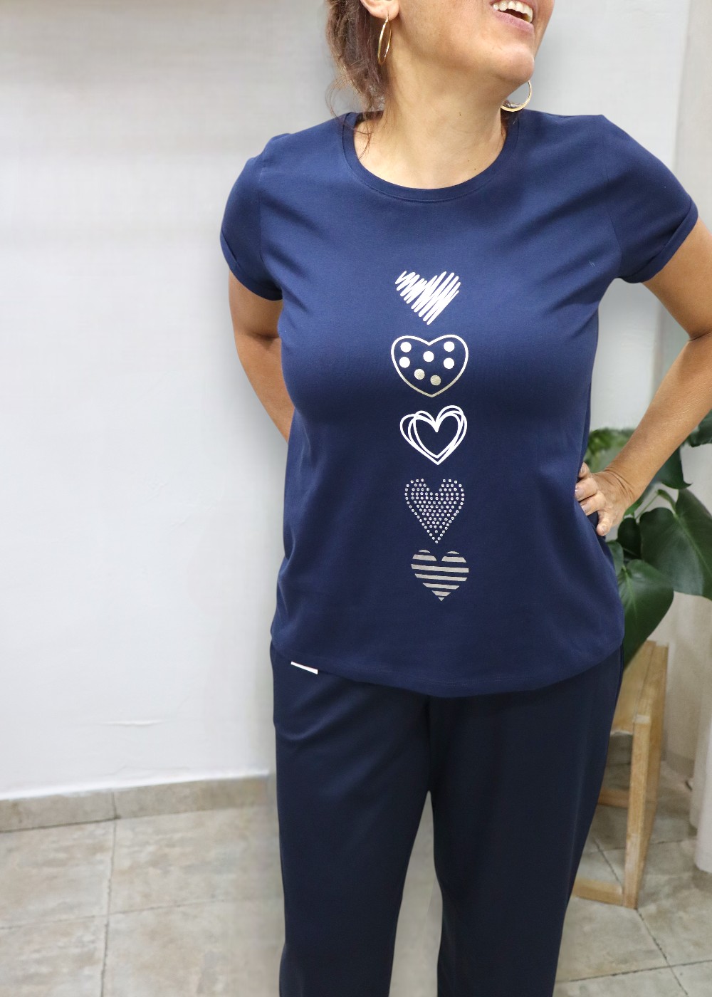 En conjunto, la Camiseta Corazones combina comodidad, estilo y un diseño romántico, convirtiéndose en una prenda ideal para quienes buscan una opción casual con un toque femenino y moderno.