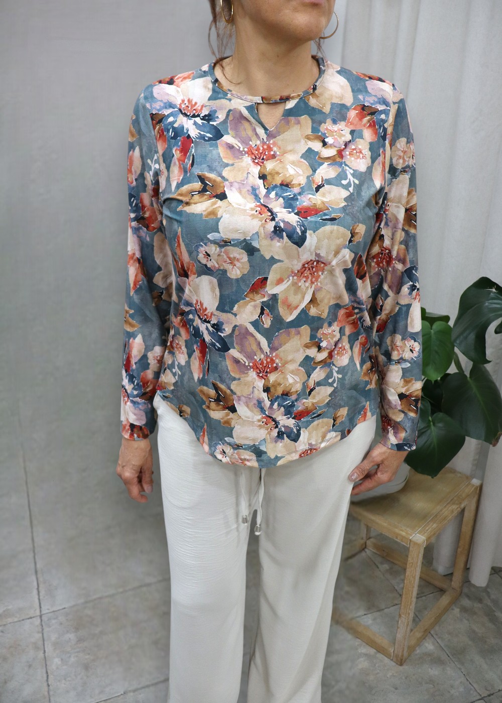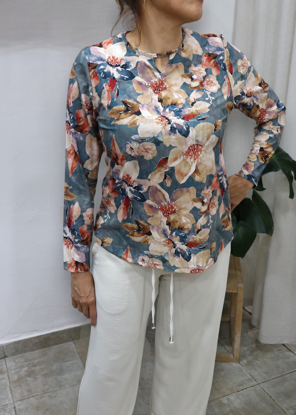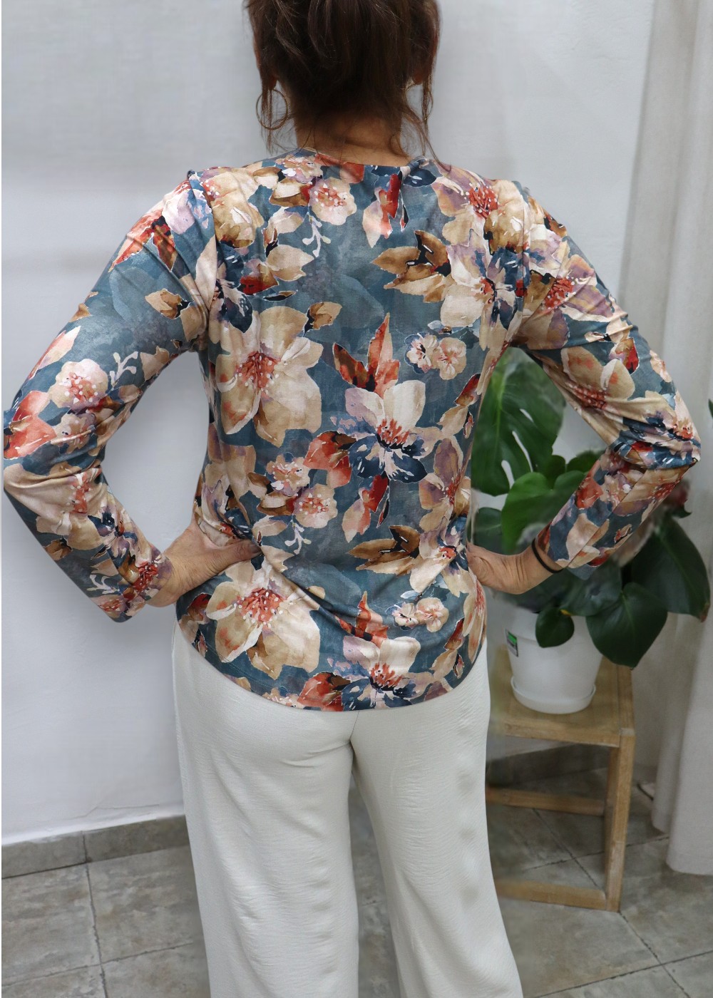Para un look casual se puede llevar con pantalones vaqueros o prendas básicas, mientras que para un estilo más elegante puede combinarse con pantalones de tela o accesorios que resalten el diseño floral.
