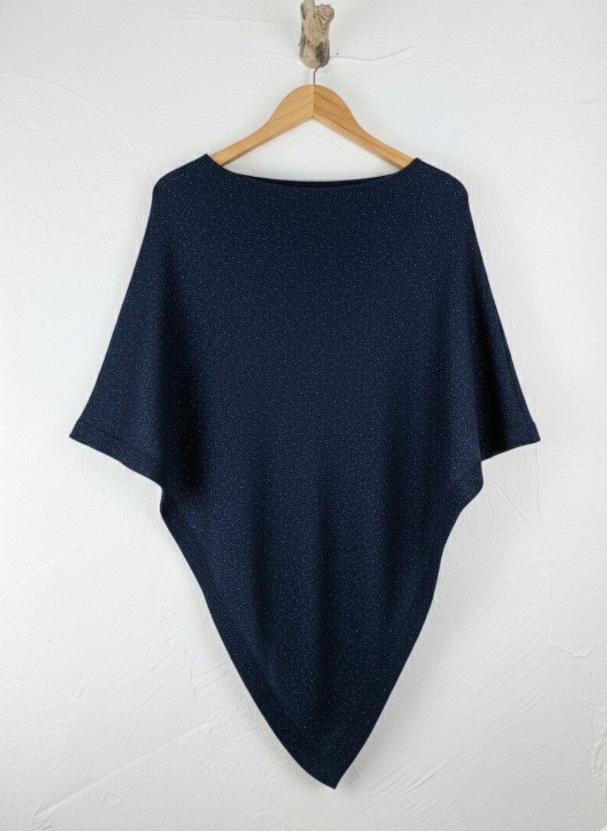 Su diseño en forma de pico ofrece una caída fluida y favorecedora, envolviendo la silueta con un movimiento ligero que aporta dinamismo y estilo.