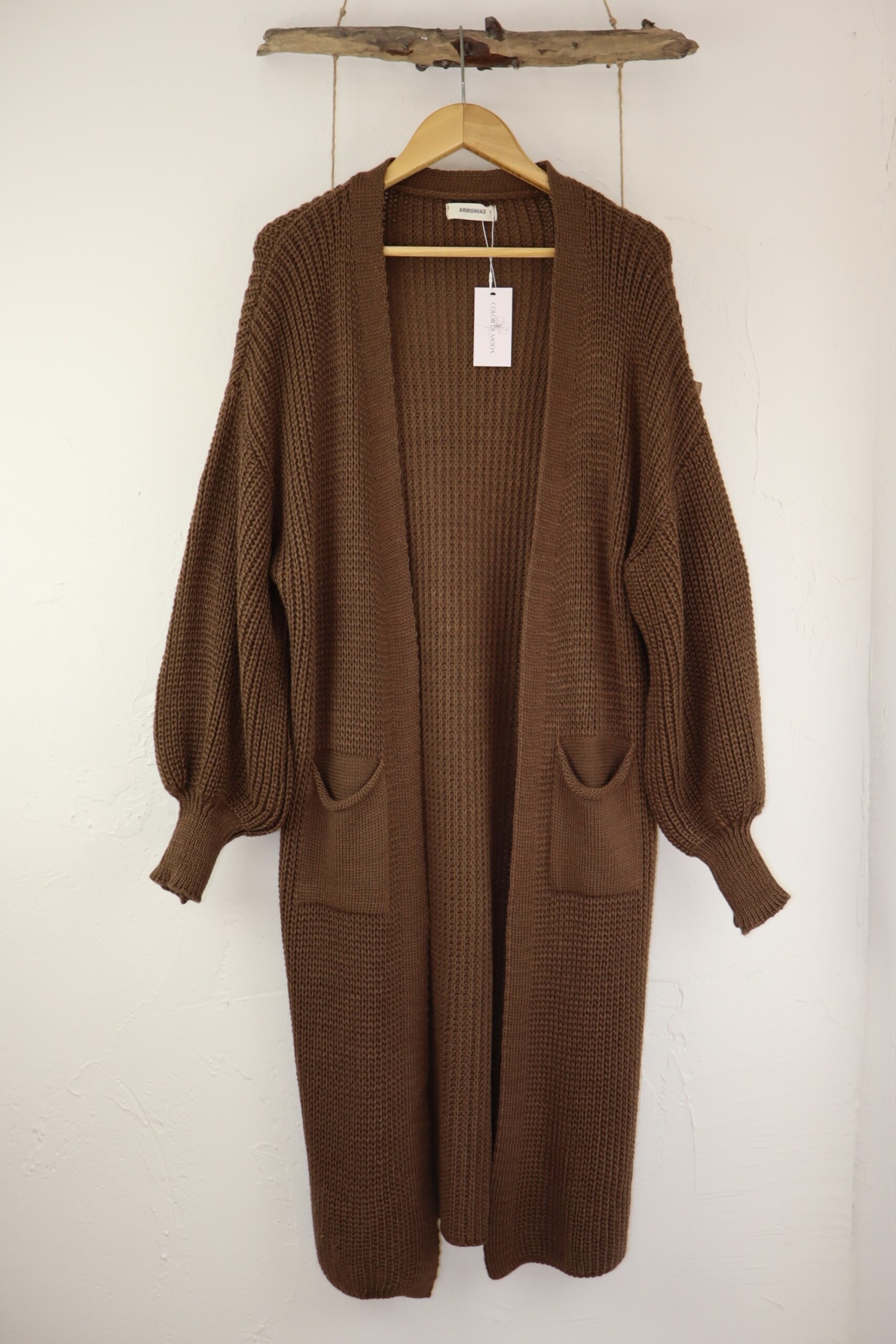 Abraza la calidez y el estilo con este cárdigan largo de punto grueso, una prenda imprescindible para quienes buscan comodidad sin perder elegancia.