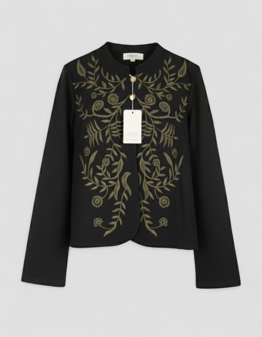 Descubre la combinación perfecta entre sofisticación y encanto artesanal con esta Chaqueta Colonia. Su diseño destaca por un exquisito bordado, que crea un contraste elegante y realza la textura del tejido. Los motivos florales y orgánicos aportan un toque bohemio refinado, ideal para quienes buscan una prenda única y con carácter.