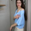 Su delicado tono celeste transmite calma y luminosidad, convirtiéndola en una opción ideal para las temporadas de primavera y verano o para los días de entretiempo en los que se busca una capa ligera y cómoda.