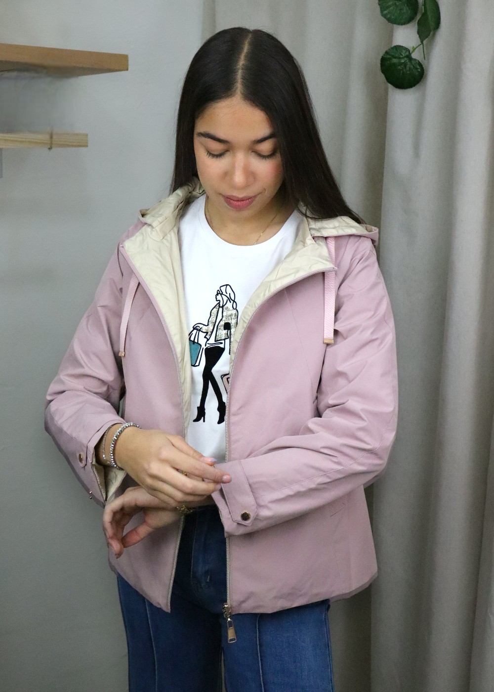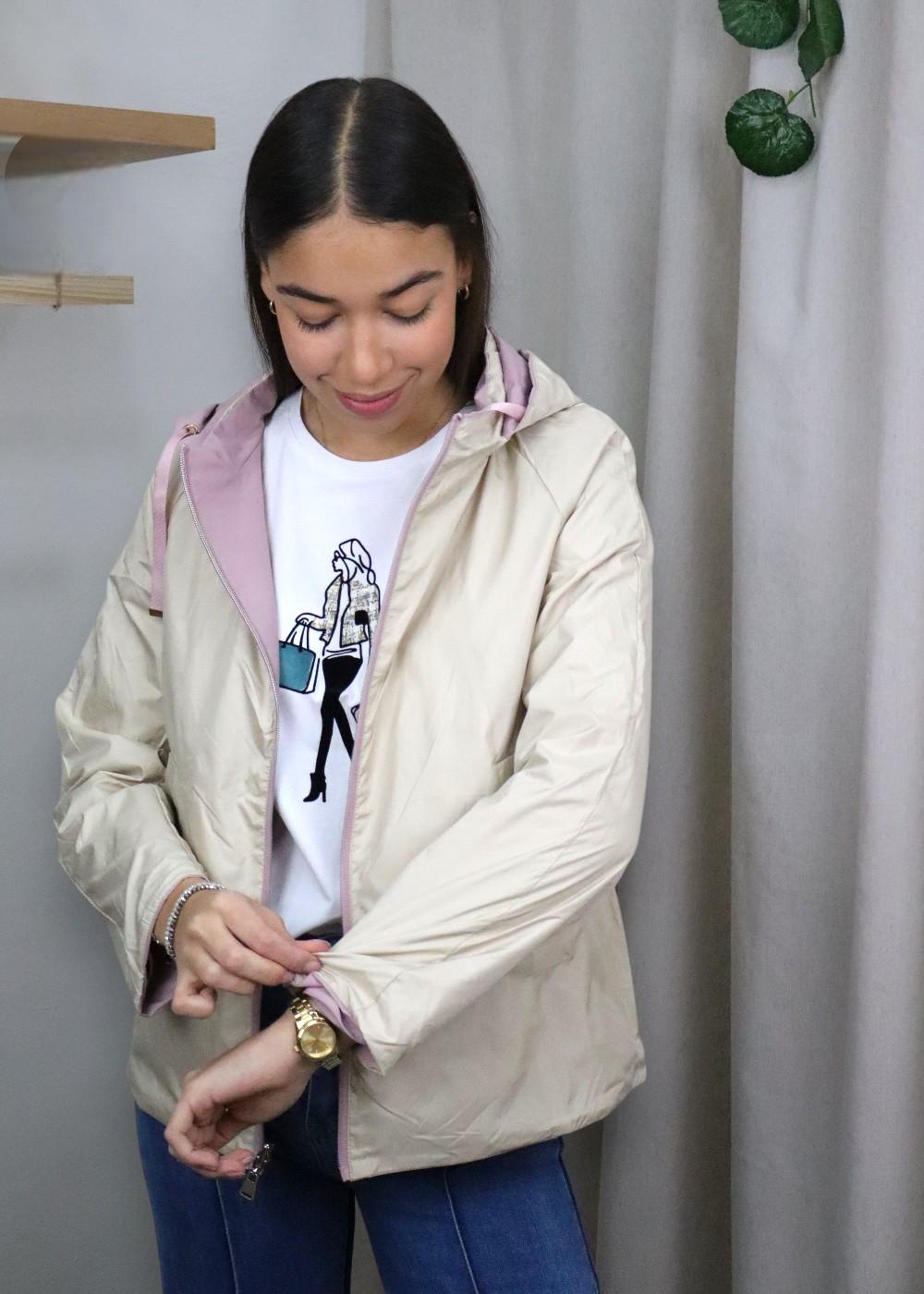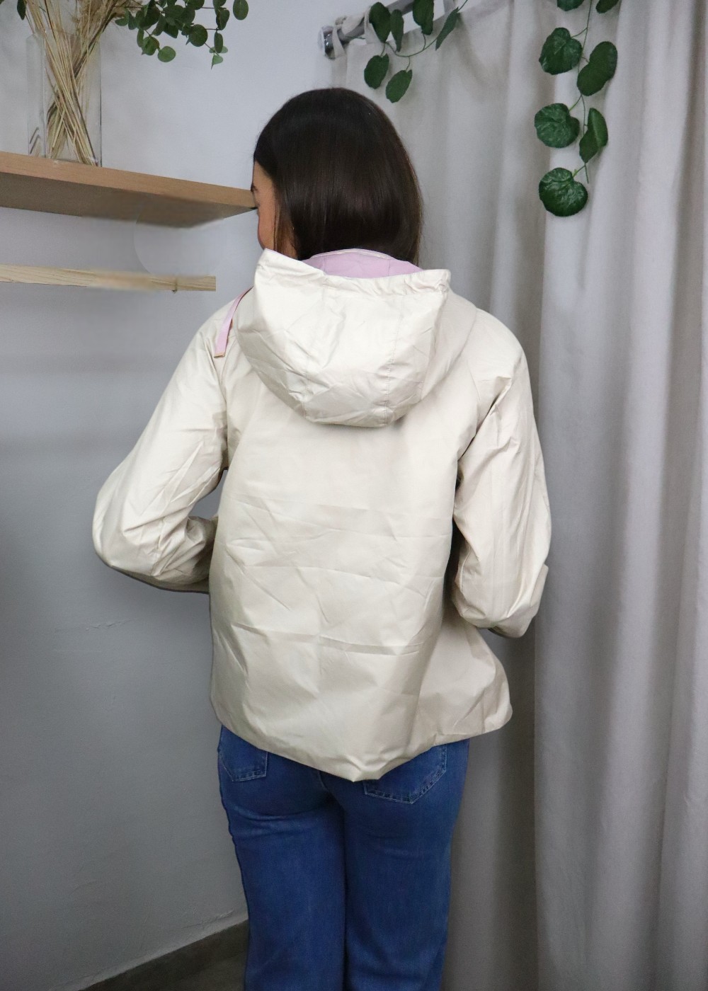 El chubasquero reversible Nube Rosa es una prenda práctica y versátil que ofrece dos estilos en una sola pieza.