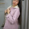 Su tono rosa suave, capucha ajustable y cierre con cremallera brindan protección y comodidad en días de lluvia.