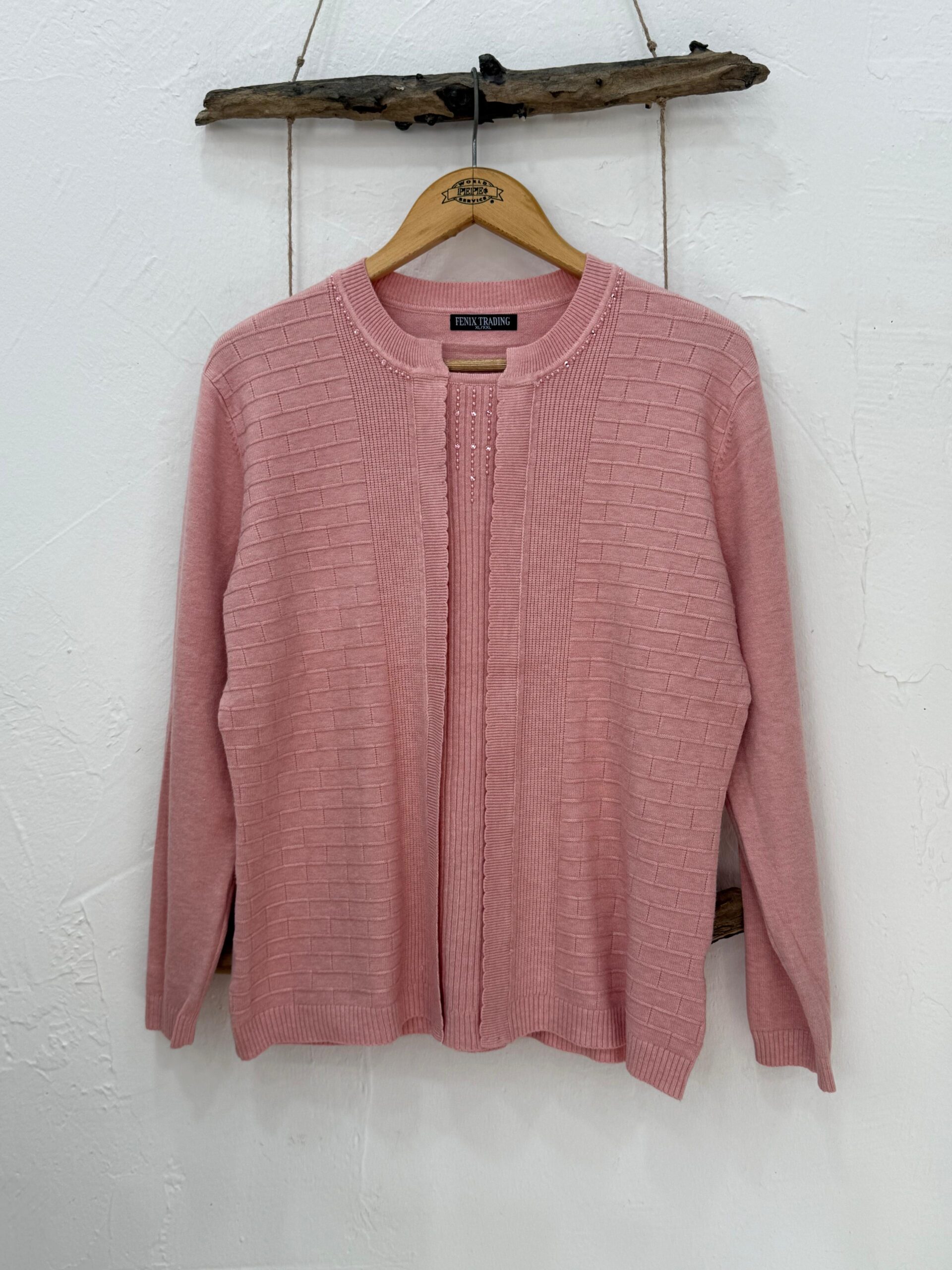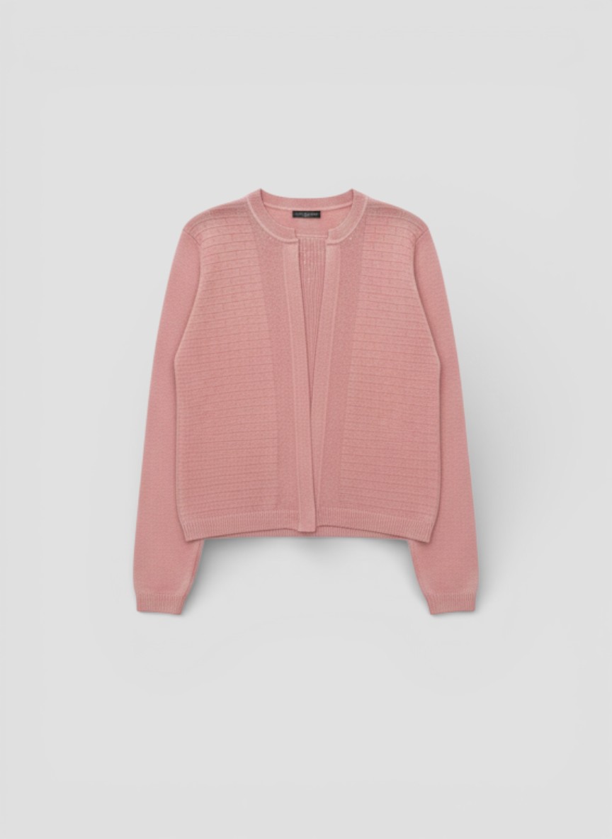 El Jersey Rosé Elegance es una prenda femenina, versátil y elegante en un delicado tono rosa empolvado. Su diseño de punto texturizado con detalles acanalados y sutiles aplicaciones decorativas en el cuello lo convierte en una opción perfecta para complementar cualquier outfit. Ligero, suave y cómodo, este cárdigan ofrece una caída natural que estiliza la figura y combina fácilmente con ropa casual o formal. Ideal para entretiempo o para añadir una capa acogedora en días fríos, destaca por su calidad y estilo atemporal. Una pieza imprescindible en tu guardarropa.