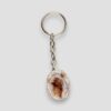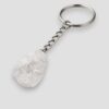En este llavero, la piedra presenta tonos blancos y translúcidos que reflejan la luz de manera sutil, creando un efecto brillante y delicado.