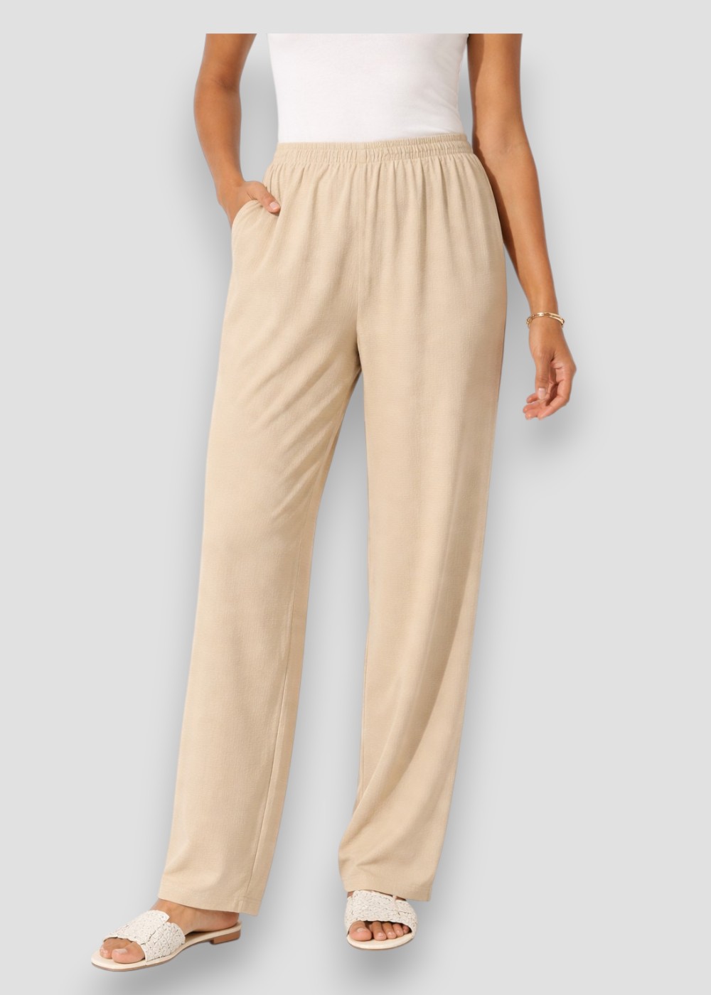 El pantalón Beige Serena es una prenda diseñada para brindar comodidad, elegancia y versatilidad en el día a día.