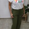 El Pantalón Bomba Satre es extremadamente versátil. Puede combinarse con camisetas básicas, blusas elegantes o tops ligeros para crear looks casuales o más sofisticados según la ocasión.