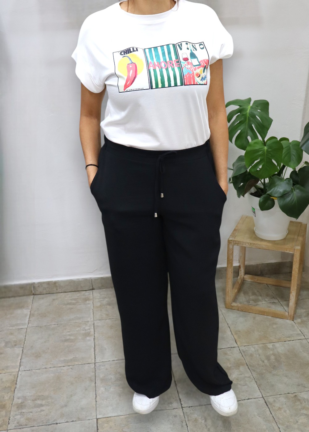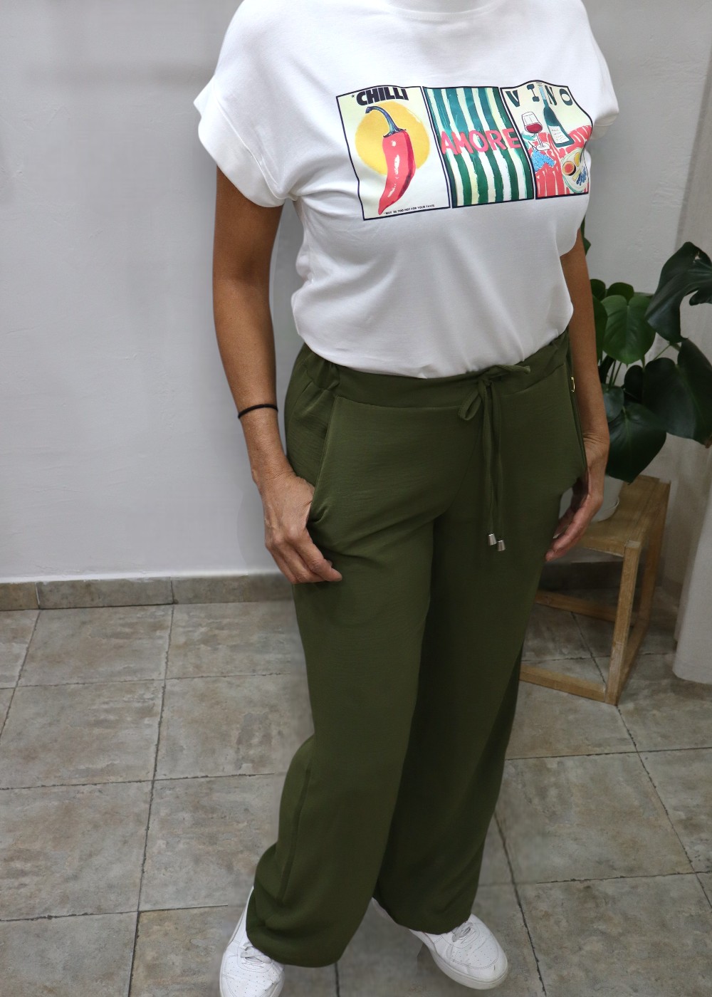Este pantalón destaca por su corte amplio y cómodo, pensado para ofrecer libertad de movimiento y una sensación ligera durante todo el día.