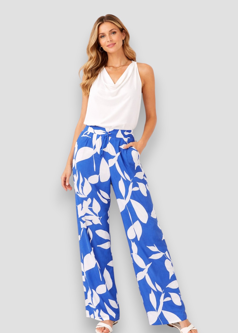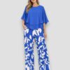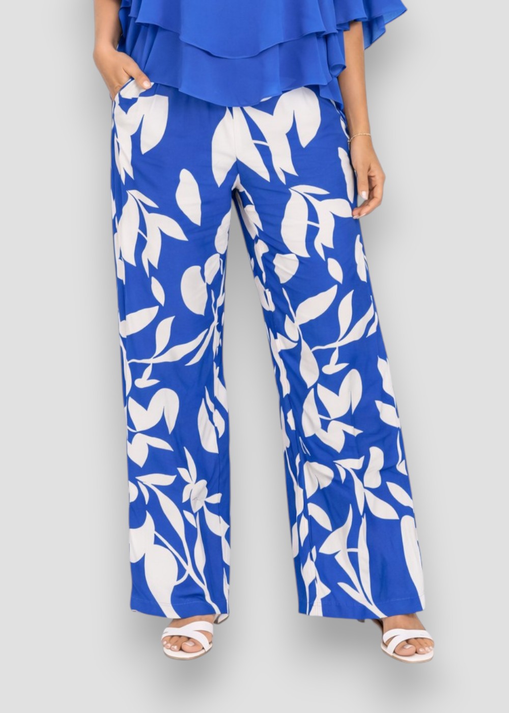 El Pantalón Botánico Azul es una prenda moderna y llamativa que destaca por su diseño fresco y su estampado inspirado en la naturaleza.