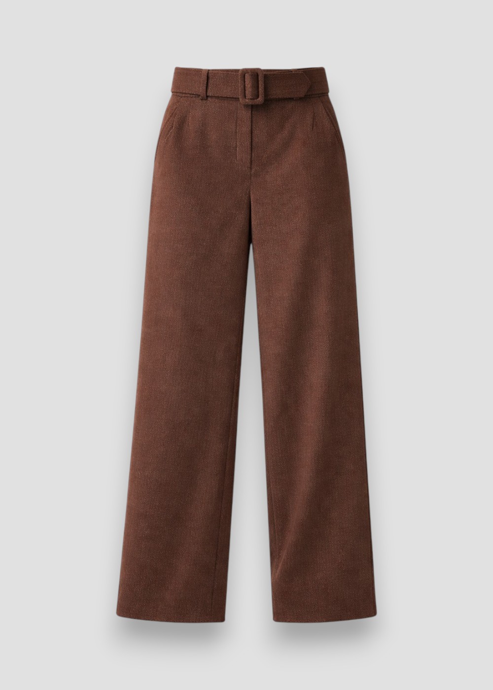 Pantalón chevron de diseño elegante y silueta amplia, confeccionado en un tejido de alta calidad con sutil patrón en espiga que aporta textura y sofisticación.