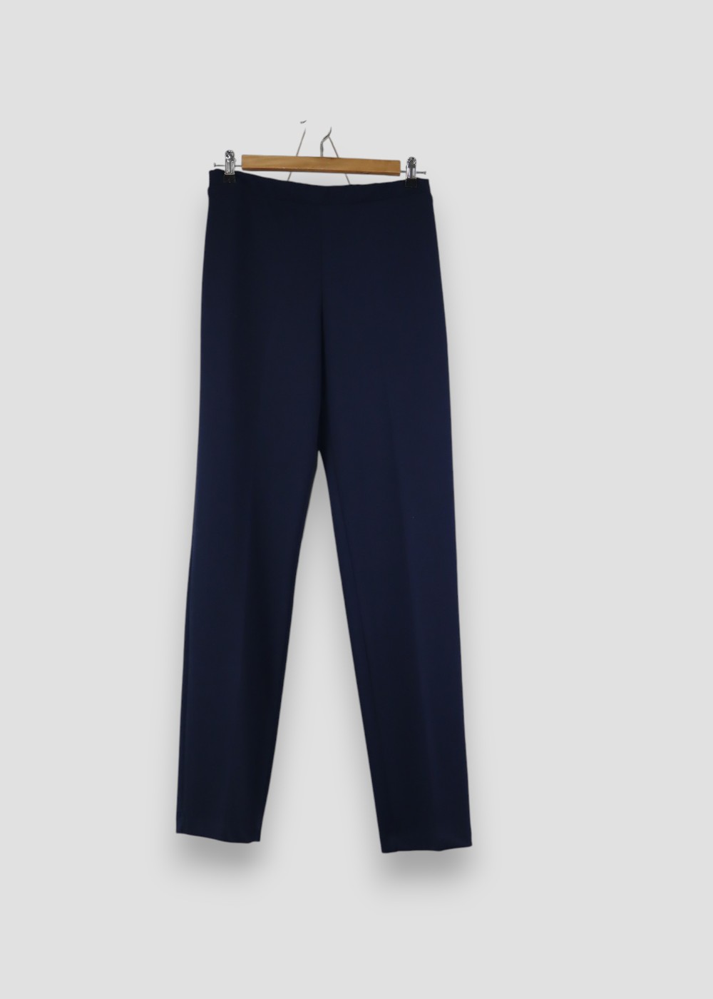 Su diseño presenta una silueta recta ligeramente ajustada, que estiliza la figura y proporciona una caída natural sobre las piernas.