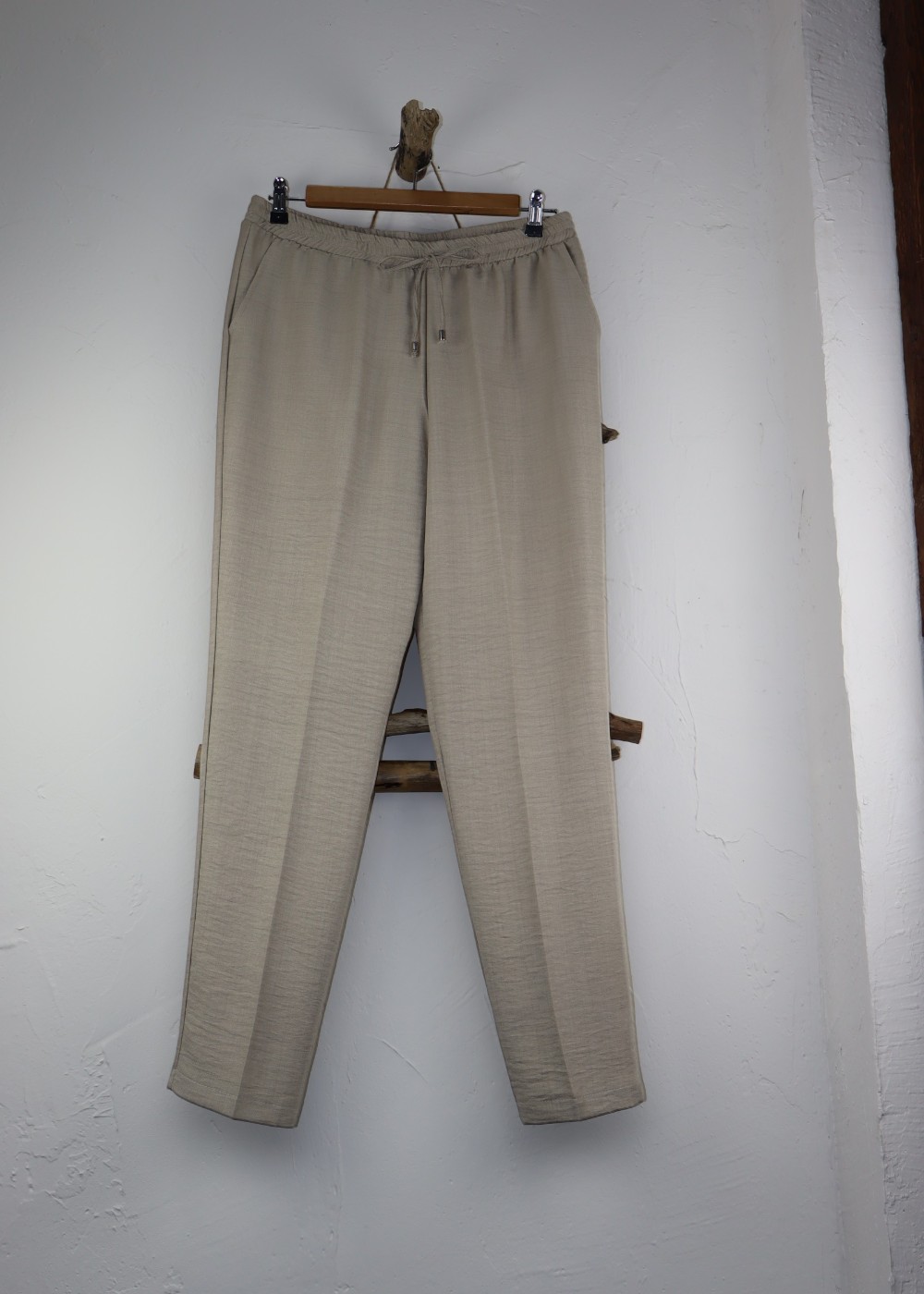 Confeccionado en tejido de lino, este pantalón es ideal para quienes buscan una prenda ligera y transpirable, perfecta para los días cálidos o para crear looks relajados con un toque sofisticado.
