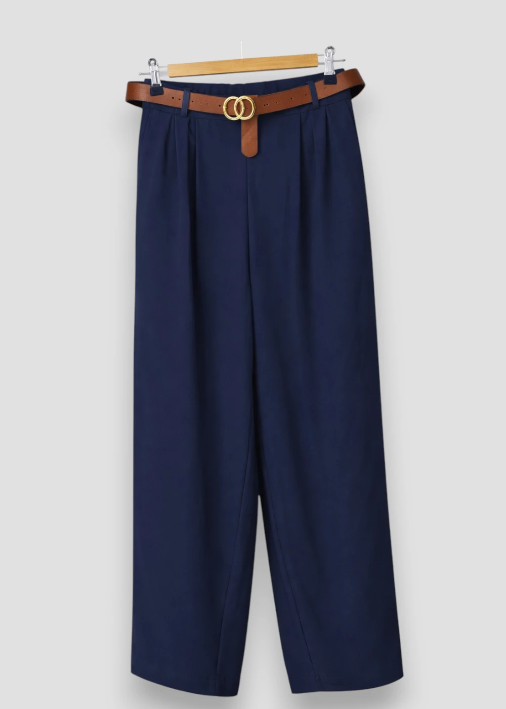 El cinturón añade un detalle funcional y decorativo que eleva el diseño del pantalón y aporta un toque de estilo adicional.