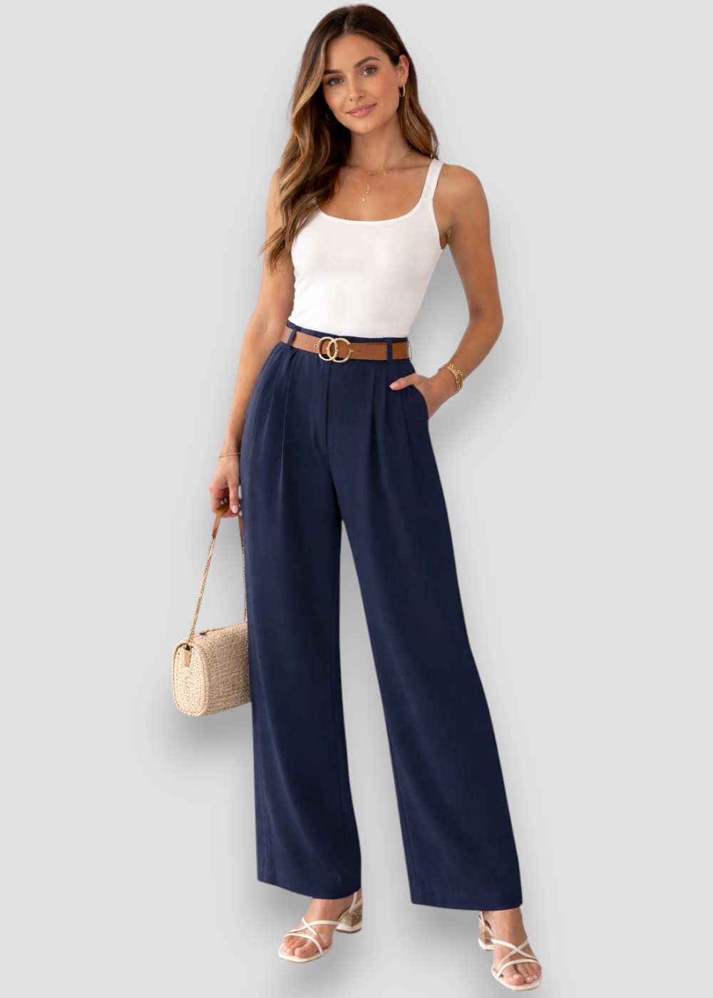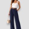 Una de las características más destacadas del Pantalón Palazzo Brisa Azul es su cintura cómoda con cinturón incorporado, que permite ajustar la prenda y resaltar la silueta de forma natural.