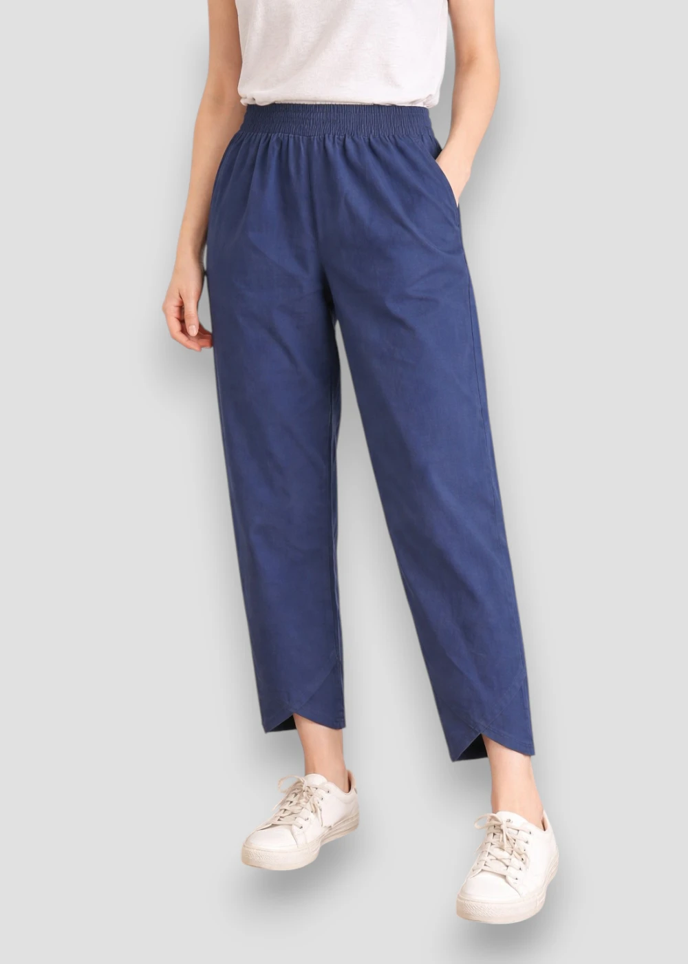 El Pantalón Tobillo Cruzado es una opción ideal para crear looks casuales con camisetas básicas, blusas ligeras o incluso prendas más estructuradas para un estilo semi-formal.