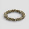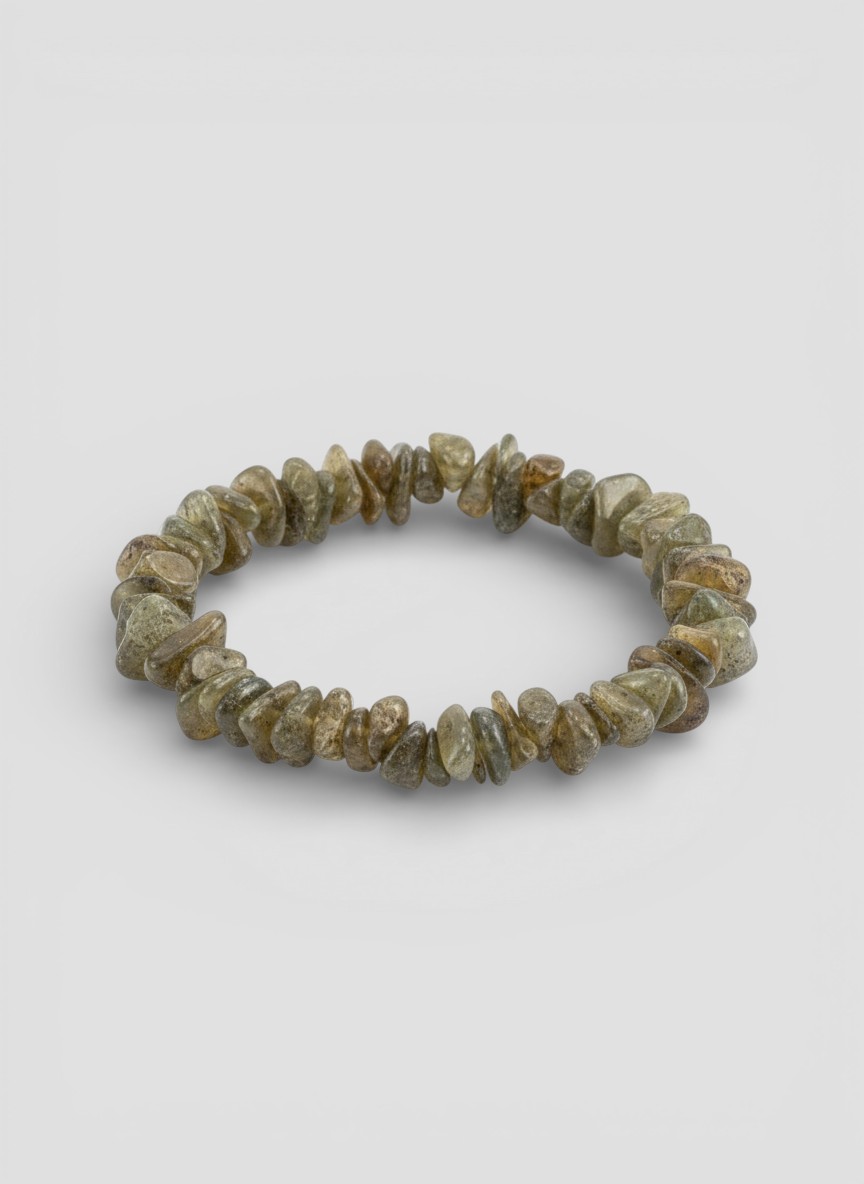La labradorita se distingue por sus tonos gris verdoso, marrón ahumado y reflejos iridiscentes, que cambian sutilmente según la luz. Este efecto visual aporta profundidad y un toque sofisticado a la pulsera, convirtiéndola en un complemento llamativo pero equilibrado. Cada piedra presenta vetas y destellos únicos, por lo que cada pulsera es irrepetible.
