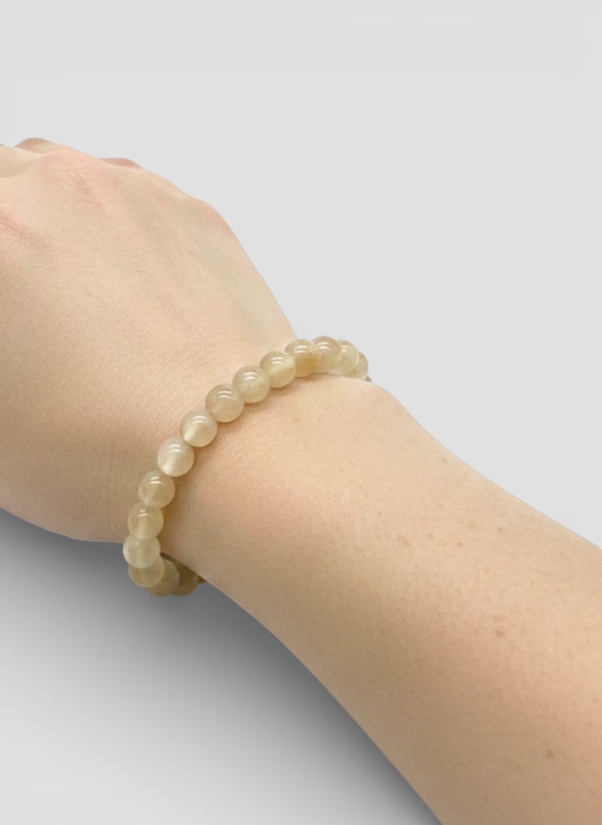 Pulsera de tectita de Libia auténtica en tono amarillo claro, con cuentas pulidas y origen meteórico. Joya natural exclusiva, elegante y llena de historia cósmica.