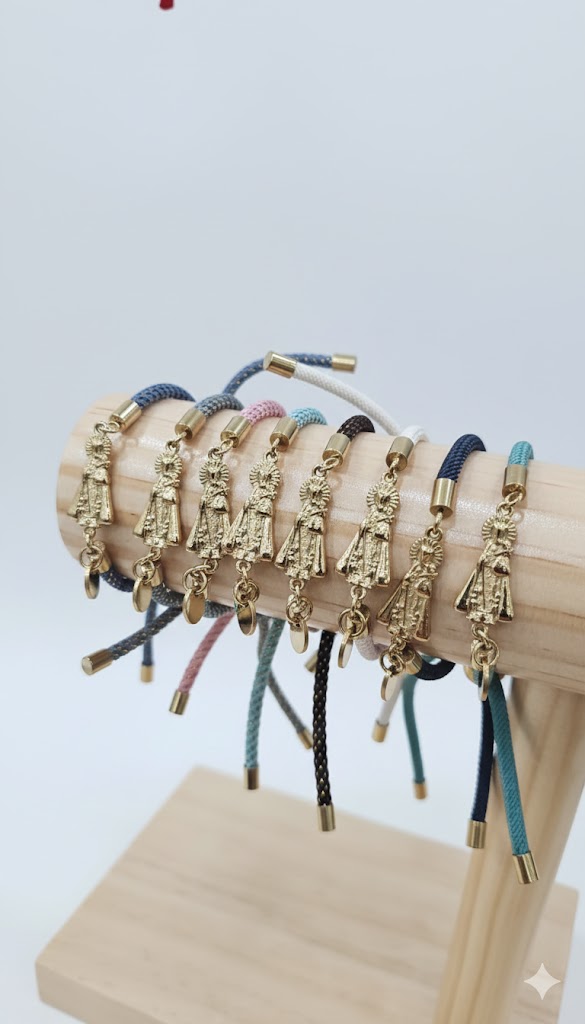 Esta pulsera ajustable con la Virgen de los Desamparados es una pieza cargada de simbolismo, tradición y elegancia. Está elaborada con cordón textil resistente, suave al tacto y disponible en una cuidada selección de colores, lo que permite adaptarla a diferentes estilos y ocasiones. Su sistema ajustable garantiza un ajuste cómodo y seguro, adecuado para cualquier tamaño de muñeca.