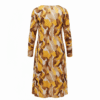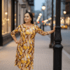 Este vestido puede combinarse fácilmente con sandalias planas, botas o zapatillas para un look más urbano, o con accesorios naturales como bolsos de rafia y joyería artesanal para resaltar su inspiración orgánica.